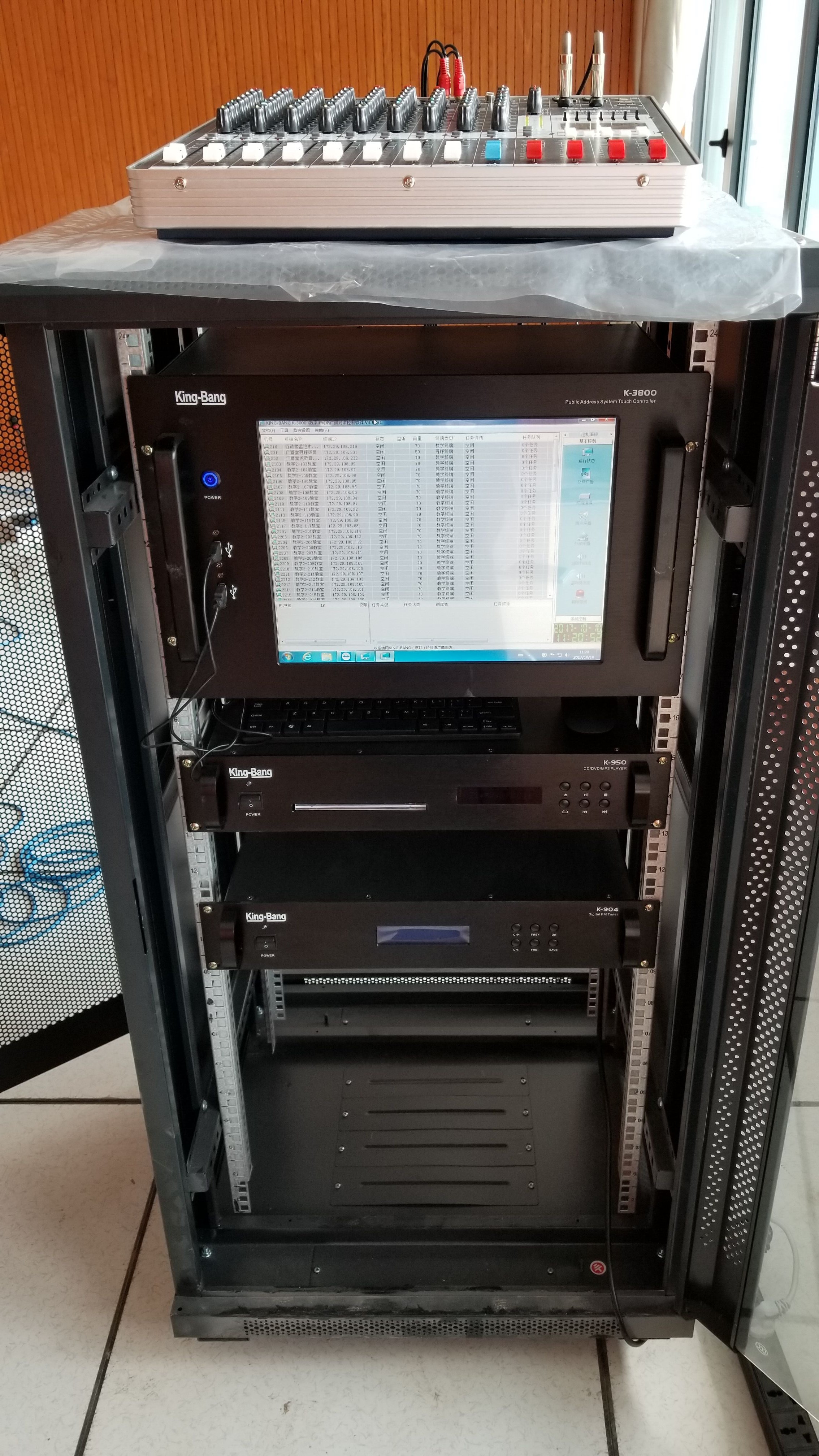 京邦電子(KING-BANG)與客戶溝通后,校方所述公共廣播主要用于各種校園公共場合,如定時打鈴、舉行全?;顒?、播報通知、升國旗、課間操、課間音樂、表揚先進、召開全校大會(如開學典禮)等。