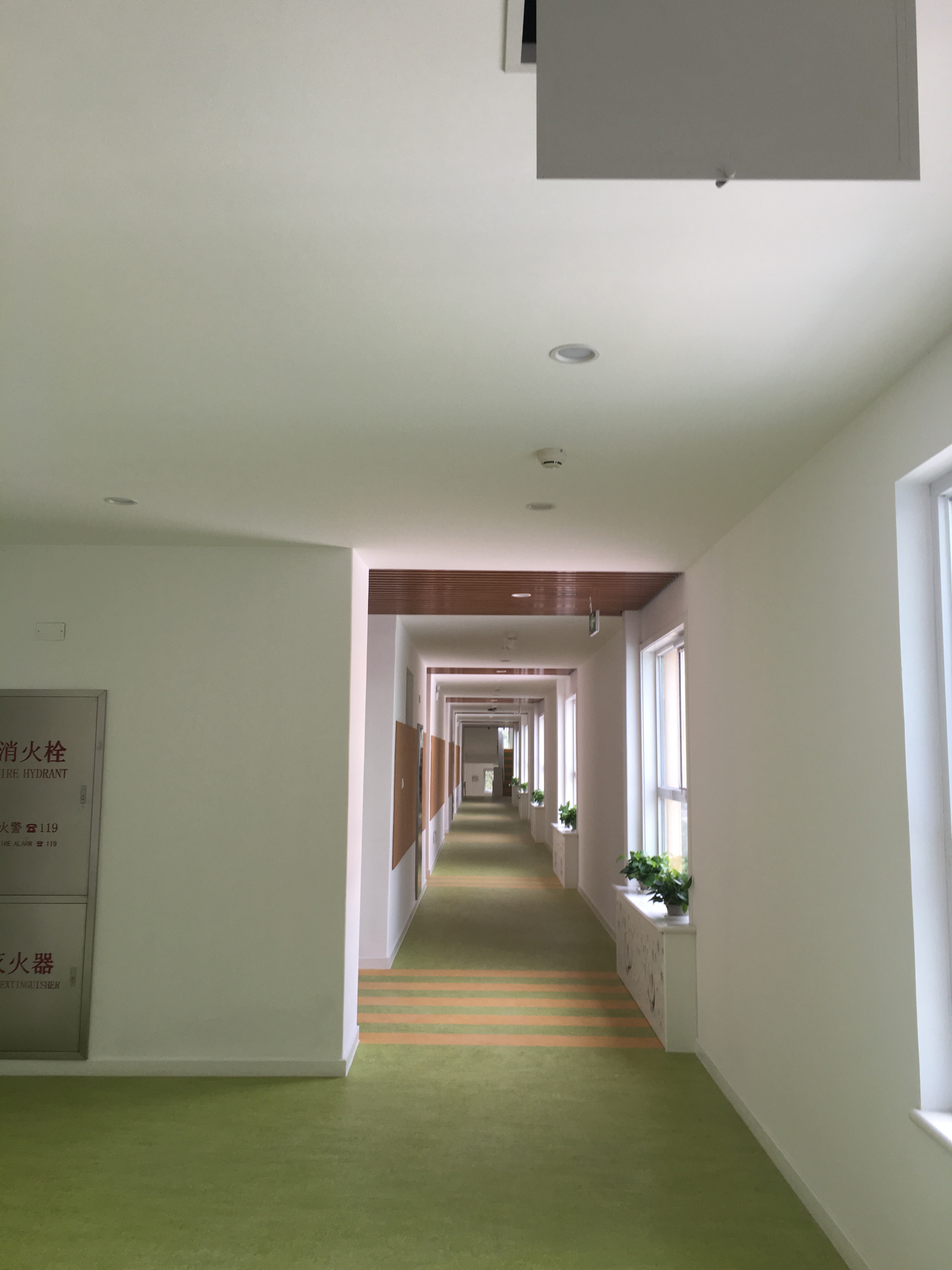 北京師范大學實驗幼兒園中每個教室和走廊采用了有源吸頂揚聲器平均分布的安裝方式,負責全場區(qū)域的聲音覆蓋,吸頂揚聲器可以很好的對聽音區(qū)實現(xiàn)覆蓋,通過處理器內(nèi)均衡、延時、壓限等功能的設置,可以將聲場調(diào)試至最佳狀態(tài),使音箱的頻響達到極佳的效果。通過調(diào)試,室外防水音柱均勻的覆蓋全場,聲壓級、均勻度等指標均能達到標準。